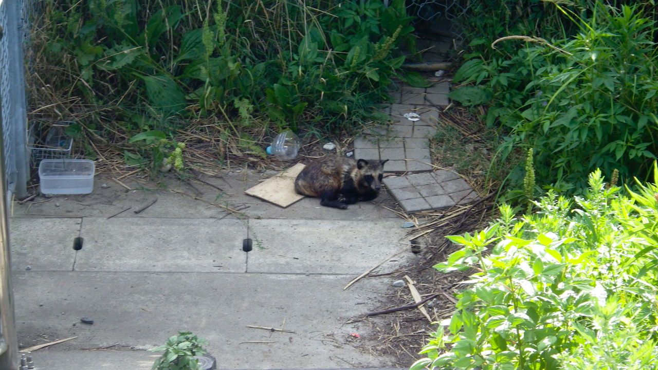 ついでに狸、まだいるのかなぁ。。。と覗いたら、いました!餌入れまでできました(笑)