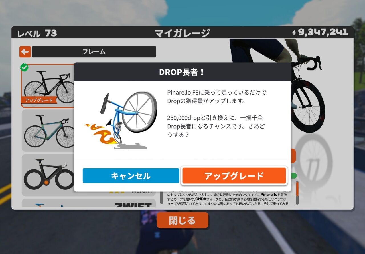 今年の春から、ZWIFTのバイクがアップグレードできるようになりました。