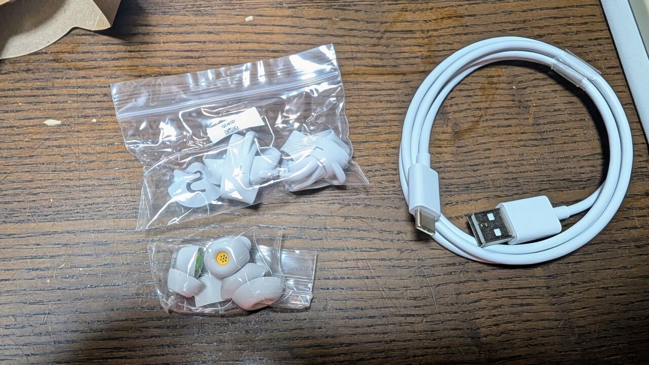 付属品は充電ケーブルと、イヤーチップとウィングチップ?です。