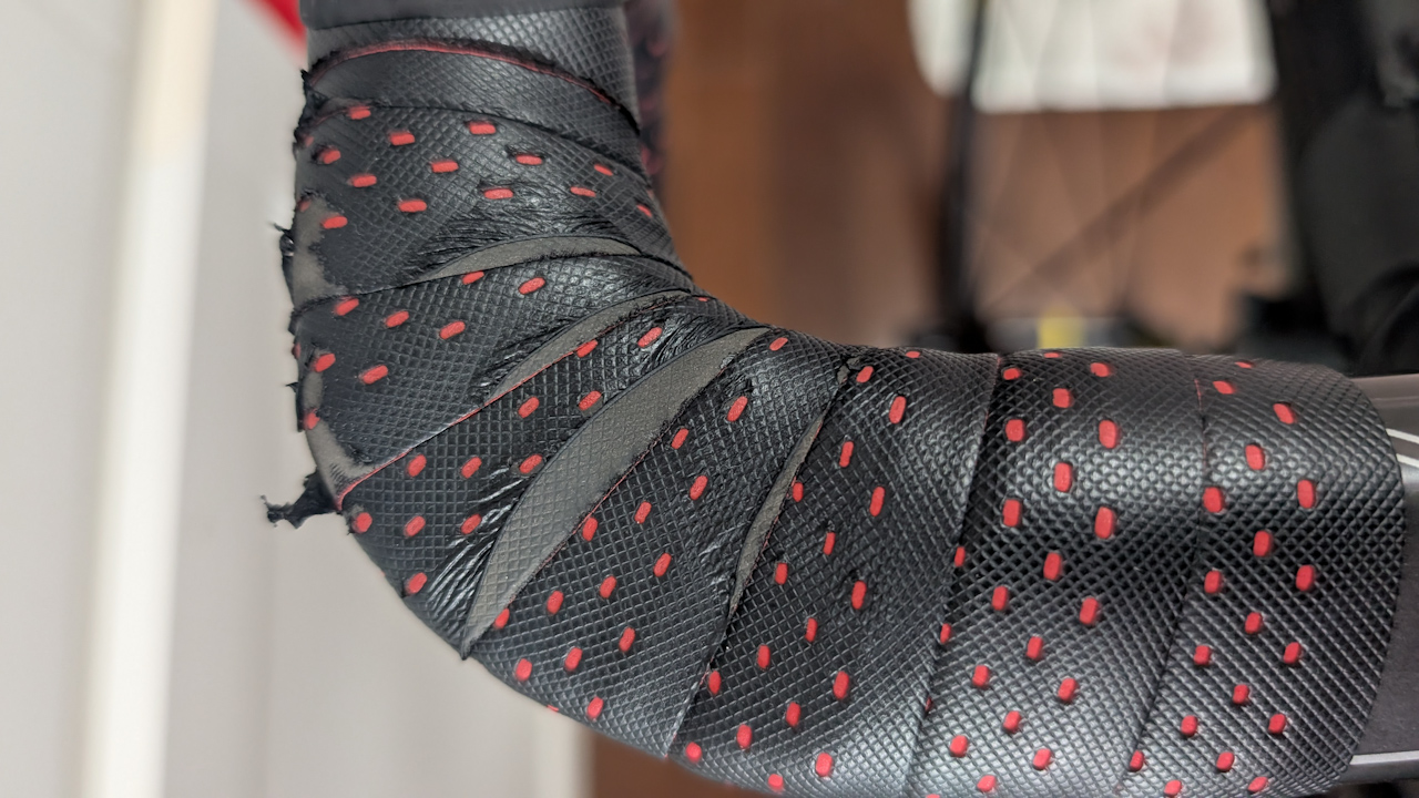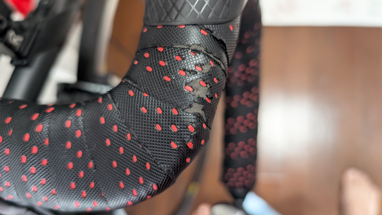 外ライドのバイクのバーテープですが、そんなに使ってなかったのに。。傷んじゃいました。