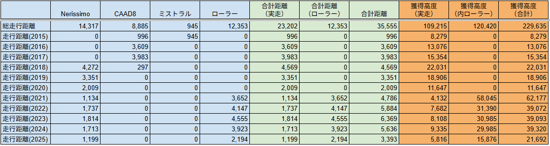 合計走行距離は、462.62kmで獲得高度が1,916mでした。回数少ないのに結構走ってますね。。