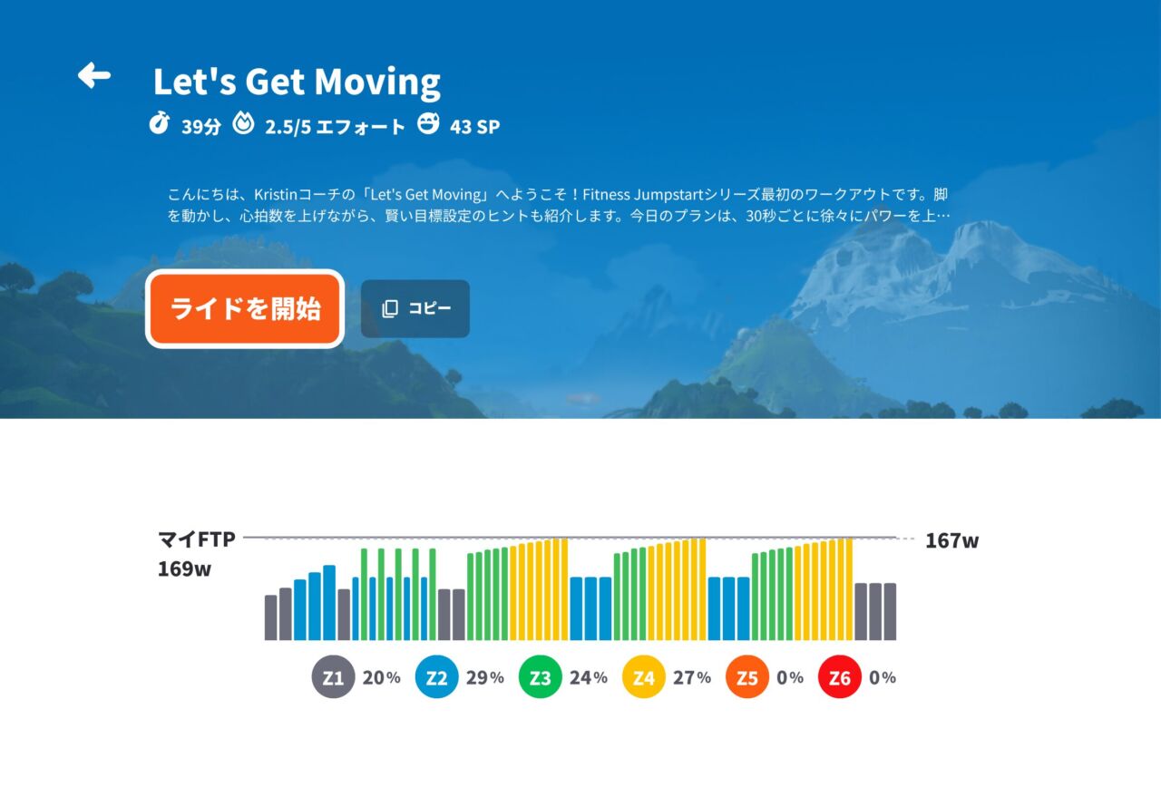見てないですが、おそらくコースに出てから選択するワークアウトの方にも残っていると思います。こちらの方は合わせる気が無いんだろうって感じで、ZWFITを始めた数年前のUIで残ってます(笑)