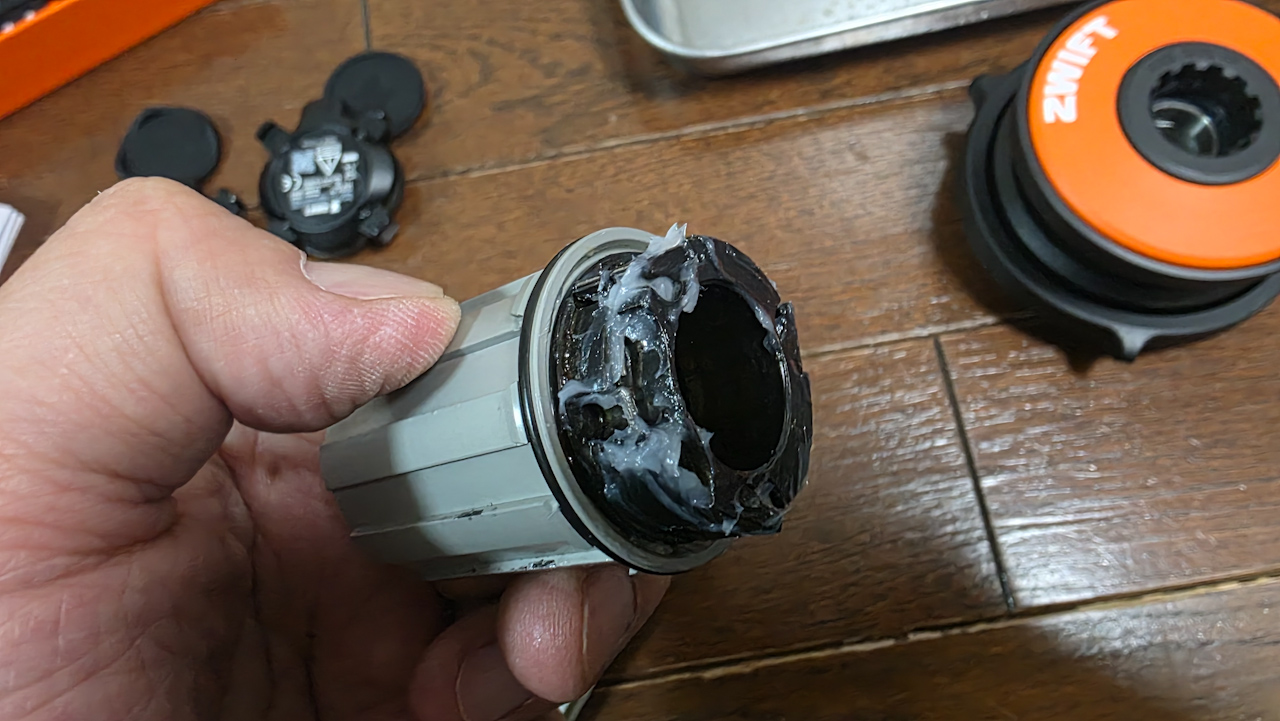で、新しいZWIFT Cogを装着しようと思って、ふと思いました。ZWIFT Cogよりフリーハブの方が気になります。この機会に掃除しようかな。。