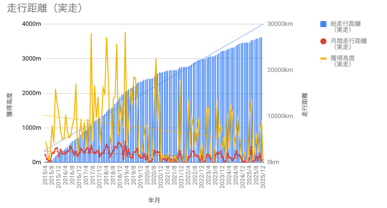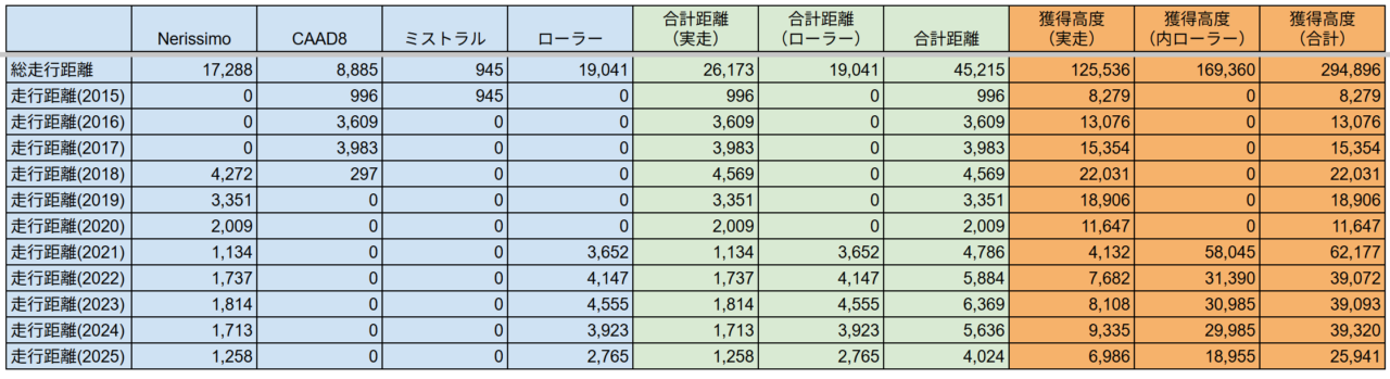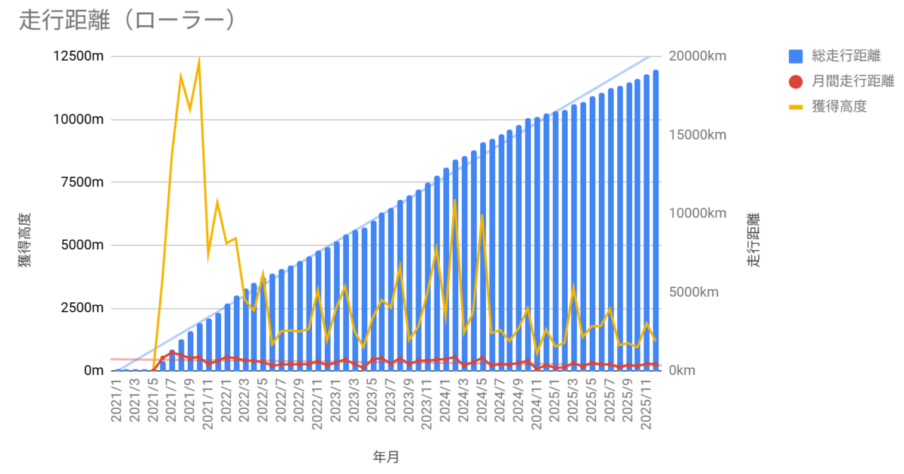 年間でみると、外ライドが1,258kmで、獲得高度が6,986m。ZWIFTが2,765kmで、獲得高度が18,055mでした。ここ数年で最低レベルでした。どんぐりの背比べぐらいの差ですけど。(^_^;
