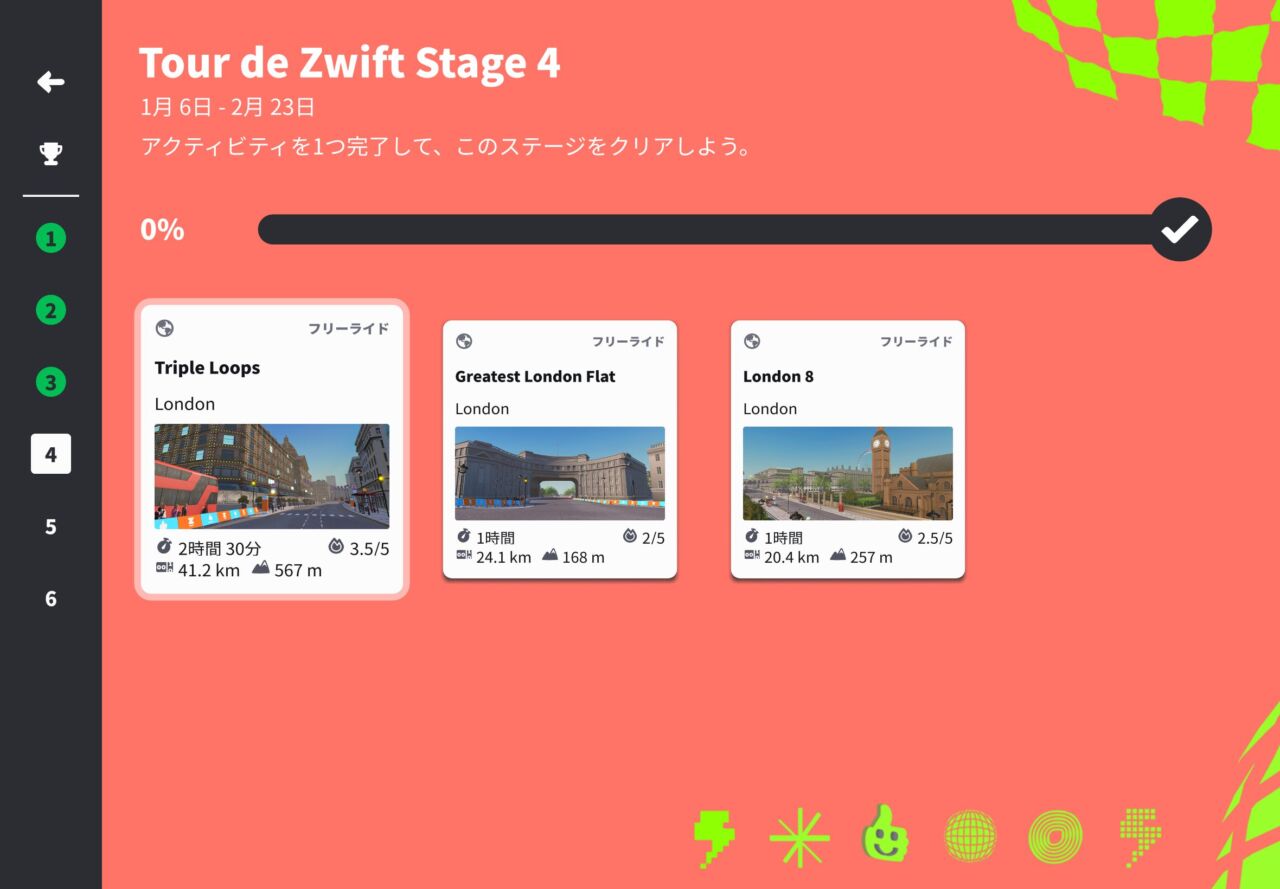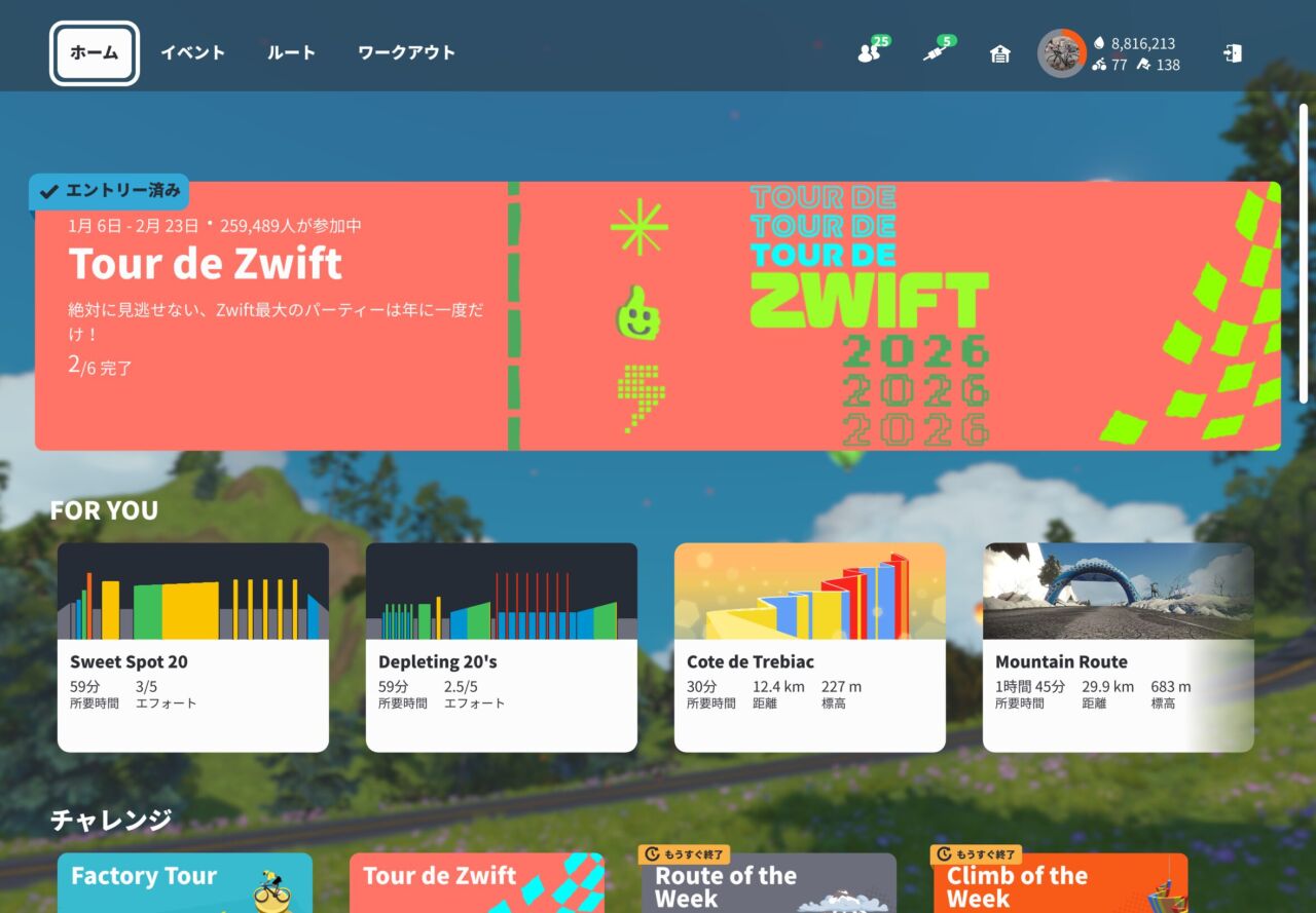 先日から、Tour de ZWIFTの2026が始まっているのを見つけて消化しています。