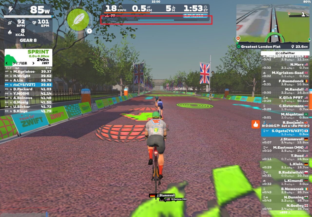 ZWIFTのHUD下側の水色のラインが何か調べてみた