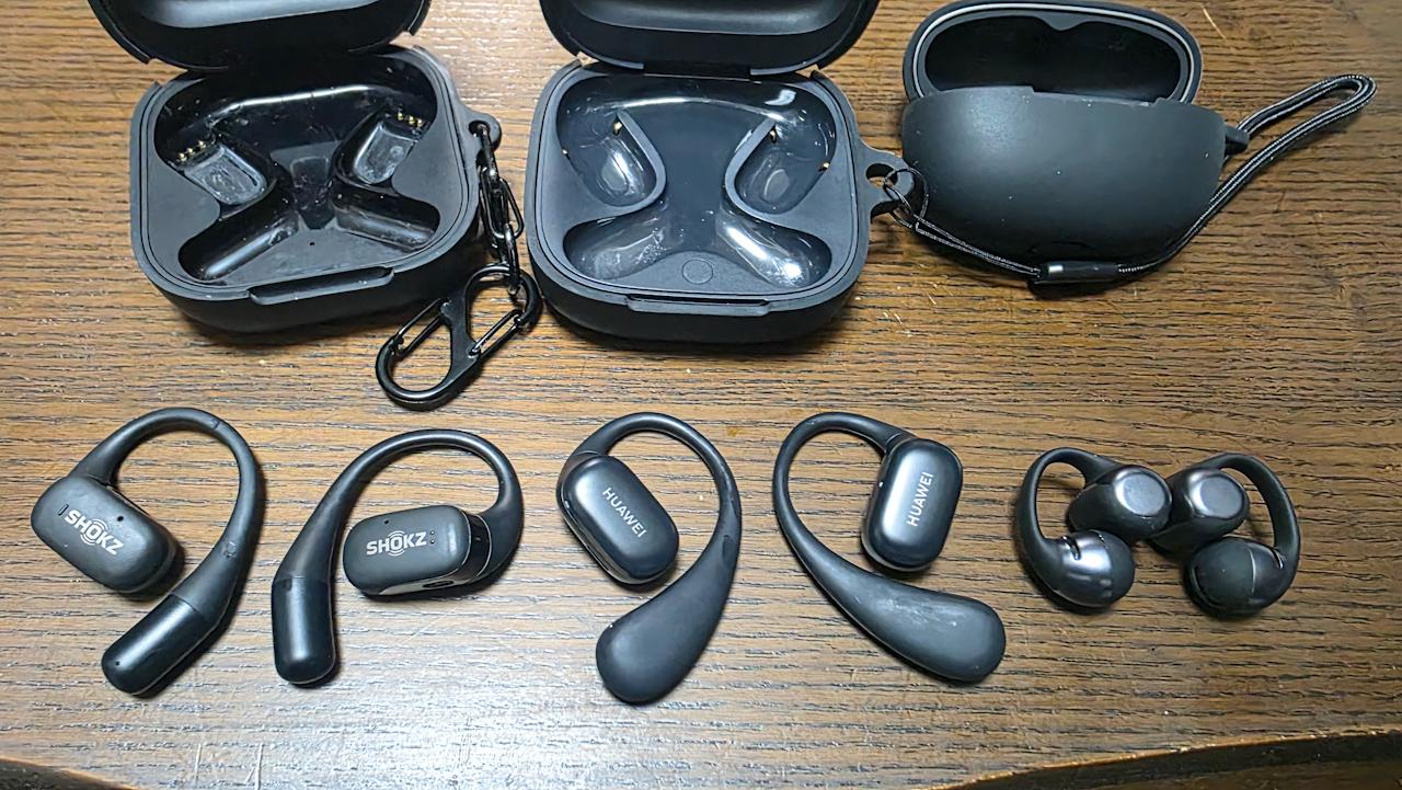 左から、Shokz OpenFit, Huawei FreeArc, Shokz OpenDots Oneです。