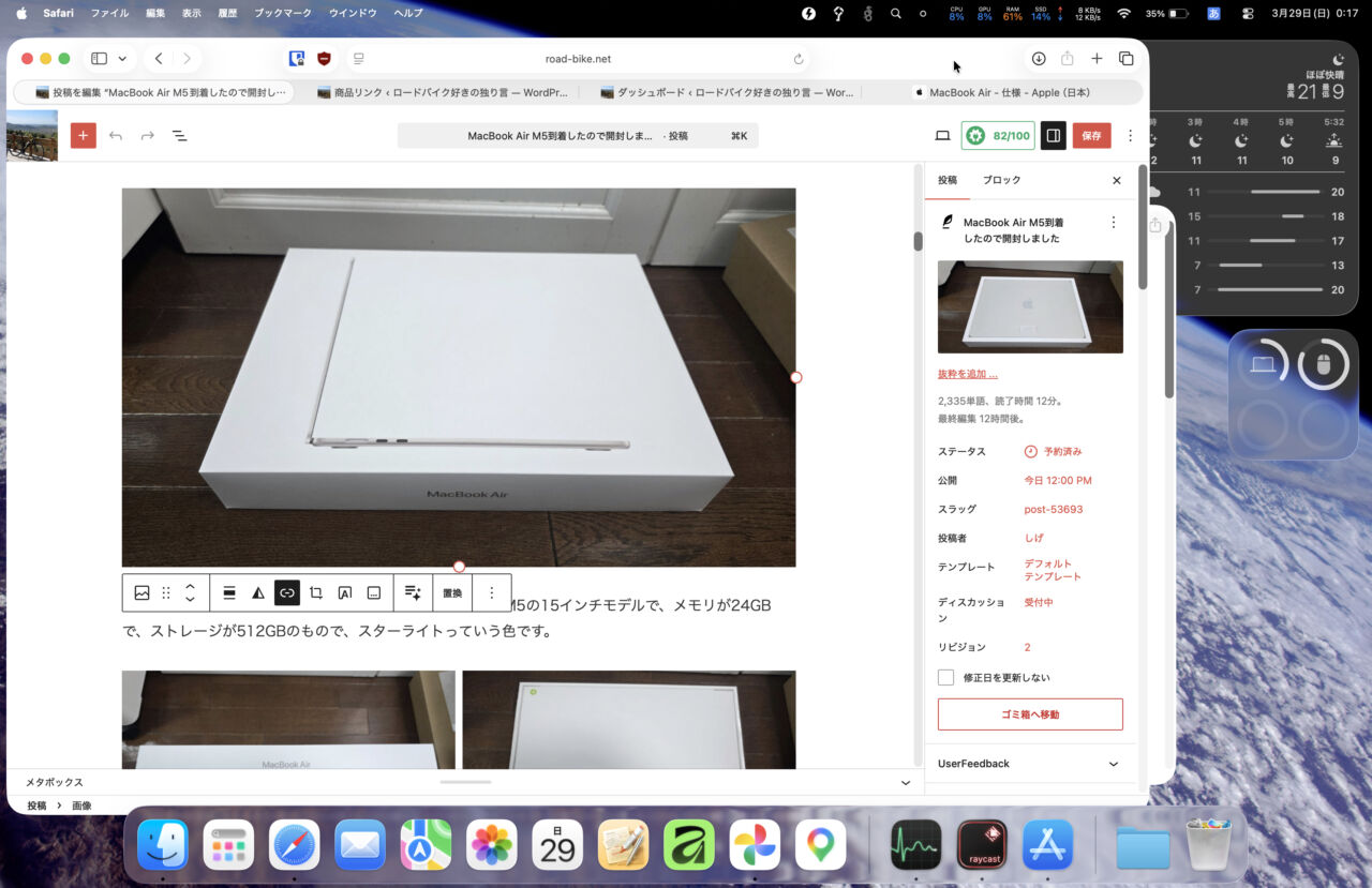 先日到着したMacBook Air M5(15インチ)のインプレと言うか感想を書いてみようと思います。