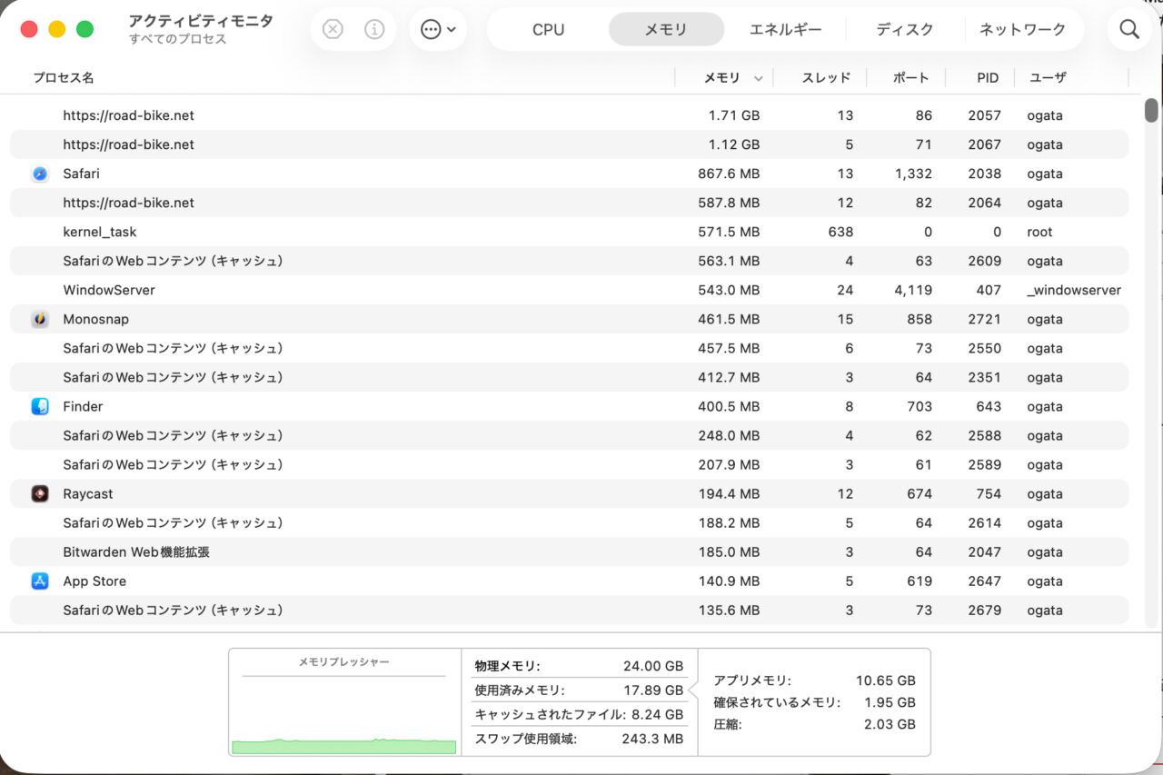 上の記事を書いていてメモリ結構使ってるなぁ。。と思ったら、Chromeよりマシそうですが、ブラウザって結構メモリ食いますよね。その分表示が早いですけど。