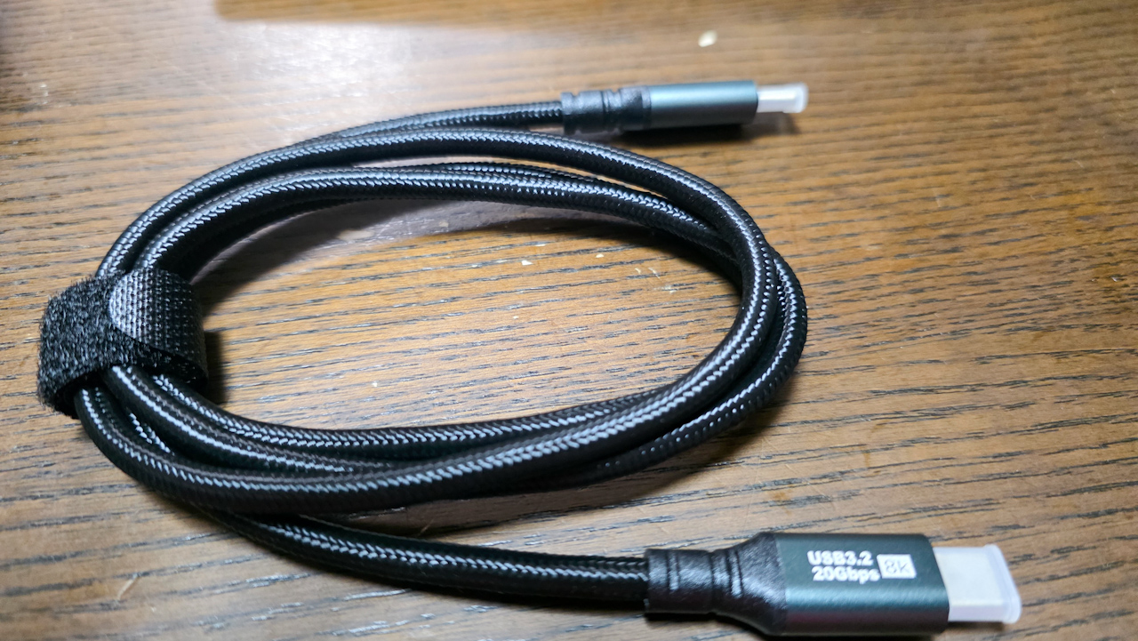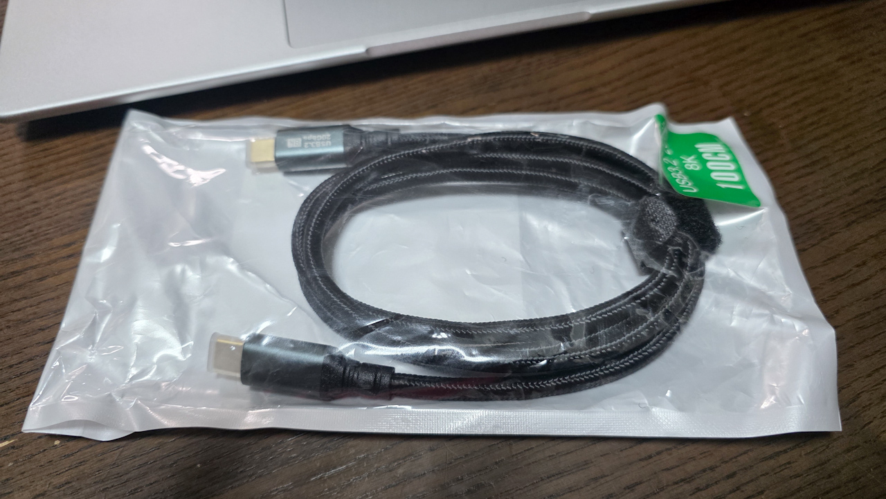 予想以上に太くて硬いです。USB3.2で、20Gbpsで、8K対応ですね。
