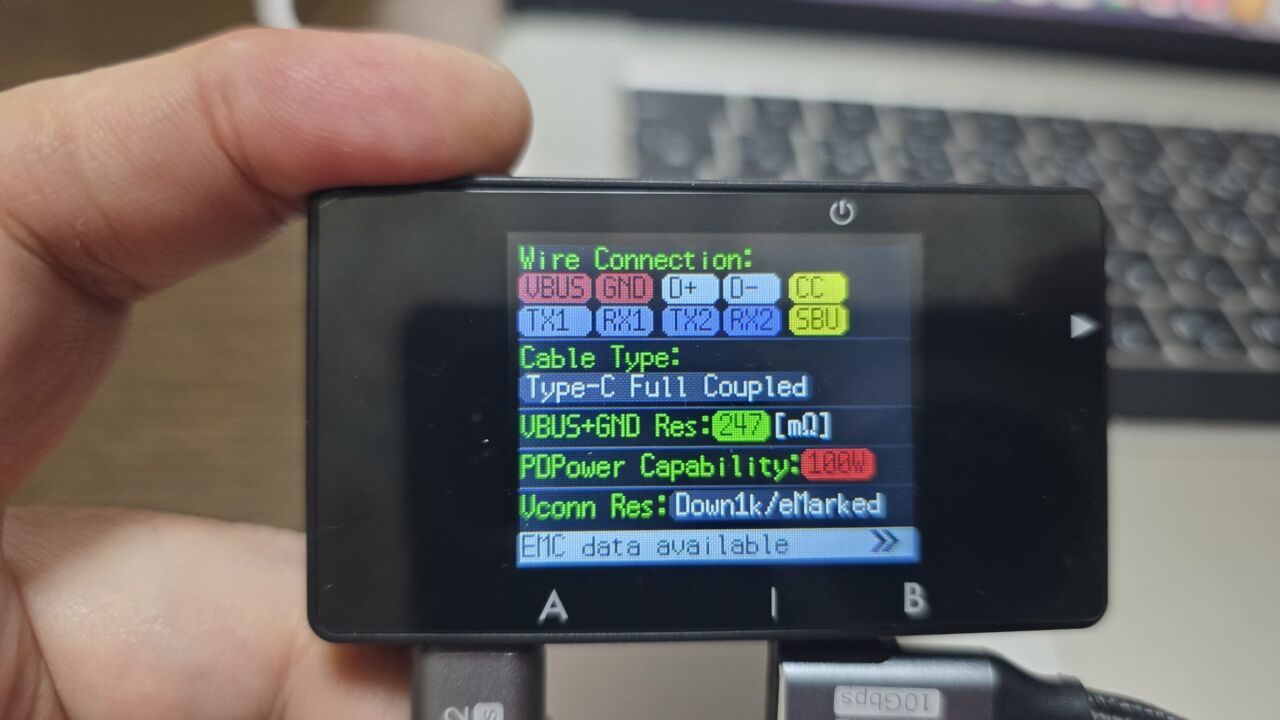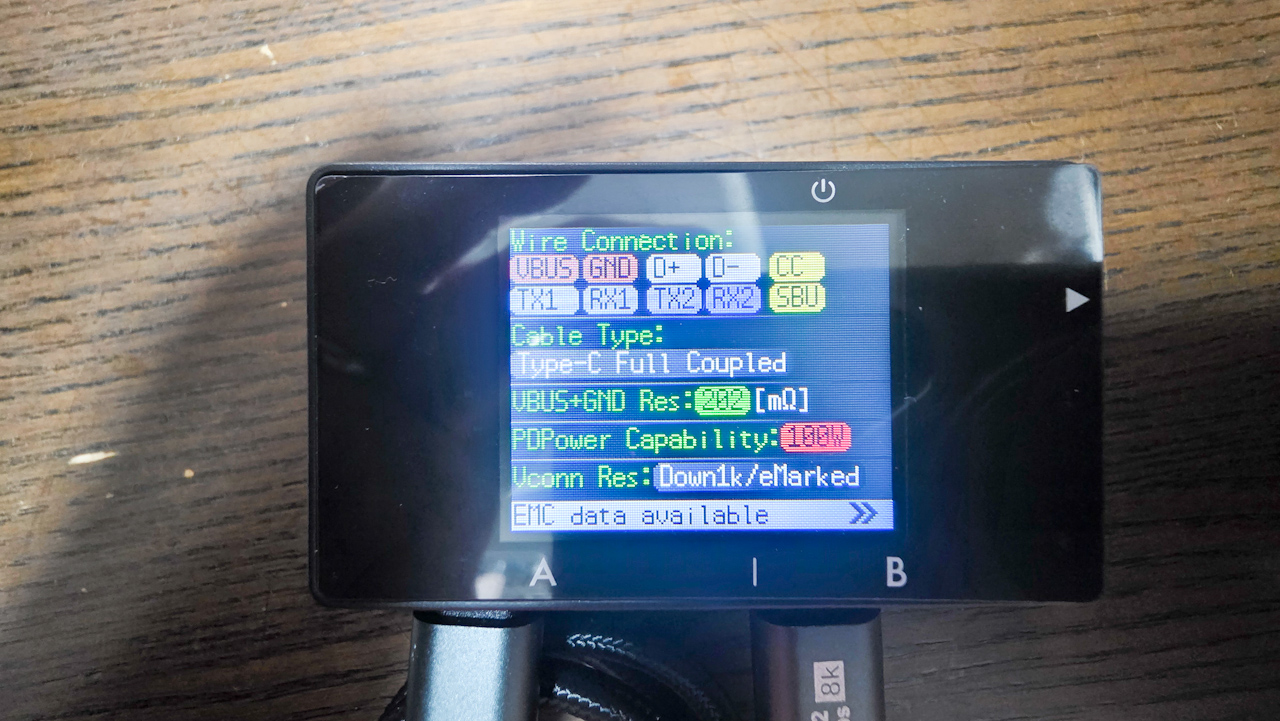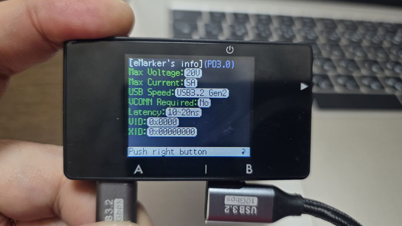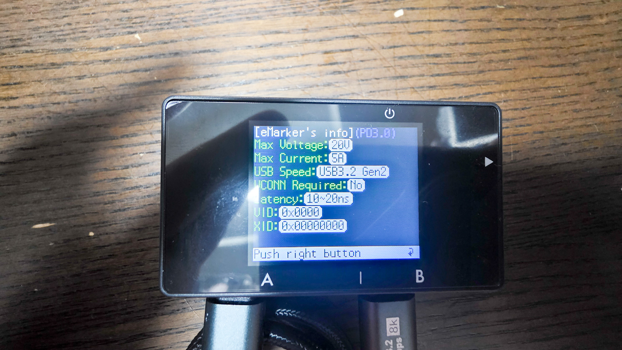 到着。ケーブルチェッカーでチェックしてみました。USB3.2(Gen2)でした。