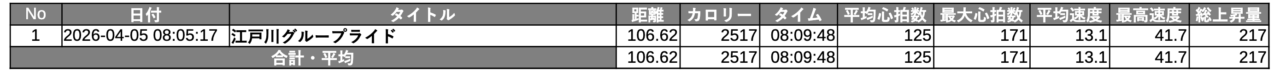4月の外ライドは久しぶりに1回で、以下の記事のクラブライドでした。