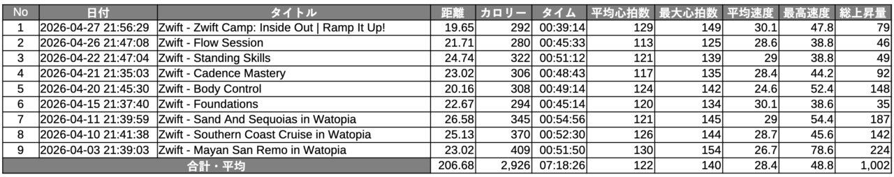 5月もZWIFTメインになると思いますが、もう少し回数をやりたいかなと思います。